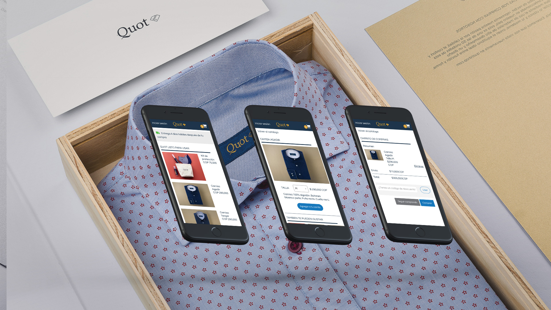 Built an experience that redefined men's garment purchases in Colombia. Quot manufactures only 50 pieces of each of five designs per season. Customizable through a digital platform to Deliver shirts made by hand, using responsible processes and materials.